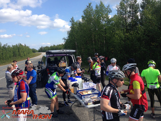 Kesän 2015 Maratonpyöräily ajettiin siis perinteisenä ajankohtana heinäkuun viimeisenä viikonloppuna pe 24.7- la 25.7. Matkaan lähti 88 pyöräilijää, eli hieman vähemmän mitä viime vuosina. Lisäksi mukana oli yhteensä 16 huoltajaa. Torstaina pyörät lastattiin Tornion Park-hotellin edessä kuorma-autoihin ja pyöräilijät kahteen linja-autoon. Keli oli aurinkoinen ja tälle kesälle lähes helteinen. Ennusteet lupasivat ajopäiville aivan jotain muuta...