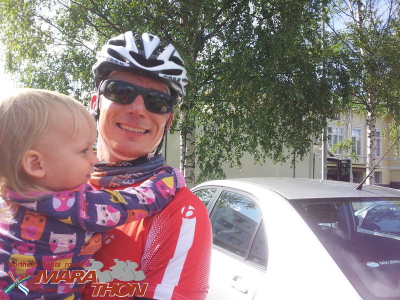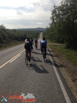 Aamulla sää oli tyven ja aurinkoinen, joskin ennusteet lupailivat päivälle yksittäisiä sadekuuroja. Kelissä tapahtuikin muutos Kolarin jälkeen, sää kylmeni ja oli ajoittain sateinen. Tämä tarkoitti tietysti useita lyhyitä sadetakin laitto/poistotaukoja. Kuntosarjan kapteenin jääräpäisyyden ansiosta ajettiin Ylitorniolta Ruotsin puolelle ja kyllä kannatti! Keli muuttui aurinkoiseksi ja valtaosa matkasta ajettiin upouudella, sileällä asfaltilla missä maantiepyörän rengas rullaa äänettömästi. Tornioon ja Park-Hotelliin saavuttiin molemmin puolin viittä, missä uupuneita pyöräilijöitä odotti, lämmin sauna, mitalien jako sekä perinteinen lohisoppa (mikä ei lopu kesken).