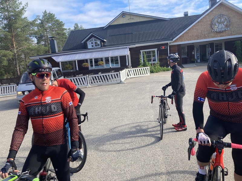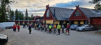 Äkäshotellissa kerrattiin päivän tapahtumia heti pyöräilyn jälkeen, seliteltiin vapaataipaleen raskautta ja nautittiin muutama huurteinen pirtukirkon terassilla. Majoittuminen Äkäshotellissa oli jaettu osallistujien kesken etukäteen kuten Harrinivassakin. Majoittumisen ja peseytymisen jälkeen pyöräilijöitä odotti tukeva päivällinen Äkäshotellin ravintolassa. Tarjolla oli Poronkäristystä ja uunilohta, kasvisruokavaihtoehtoa unohtamatta. Pyöräilijöiden palaute ensimmäisen päivän ajoreitistä oli positiivinen - loppua kohden maasto muuttui mäkisemmäksi ja maisemat jylhemmiksi, myös liikenne oli hiljaista. Toki osaa harmitti kun lähtö ei tapahtunut perinteiseen tyyliin Kilpisjärveltä. Toinen ajopäivä alkoi pirtukirkon sisäpihalta ryhmittäin klo 06:00 - 07:30 sekä 09::00. Sää suosi pyöräilijöitä sillä tuuli puhalsi koko päivän pääosin seläntakaa eli koillisen suunnalta. Tämä myös näkyy toteutuneissa nopeuksissa. Alkumatka ajettiin perinteistä reittiä myöden Kolariin asti, mistä siirryimme Ruotsin valtakunnan puolelle. Matkaa taivallettiin Pajalan, Pellon ja Matarengin kautta aina Haaparannalle asti. Tien kunto on erinomainen ja hyvällä säällä nopeudet nousevatkin helposti todella korkeiksi.