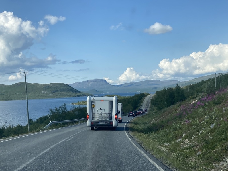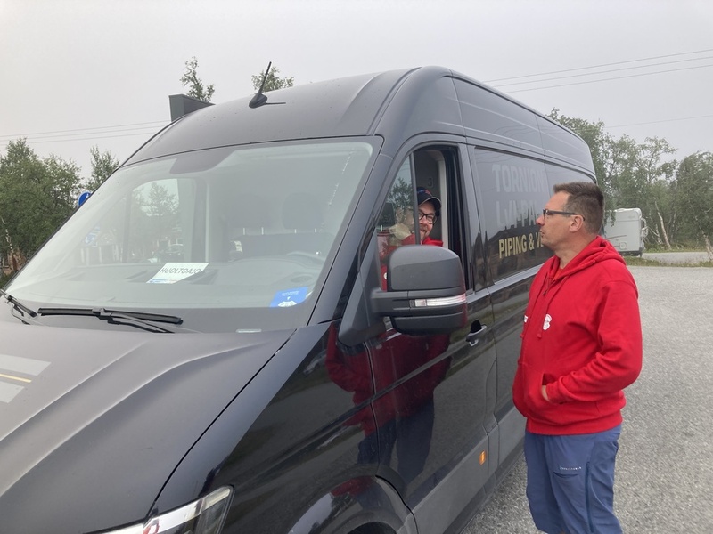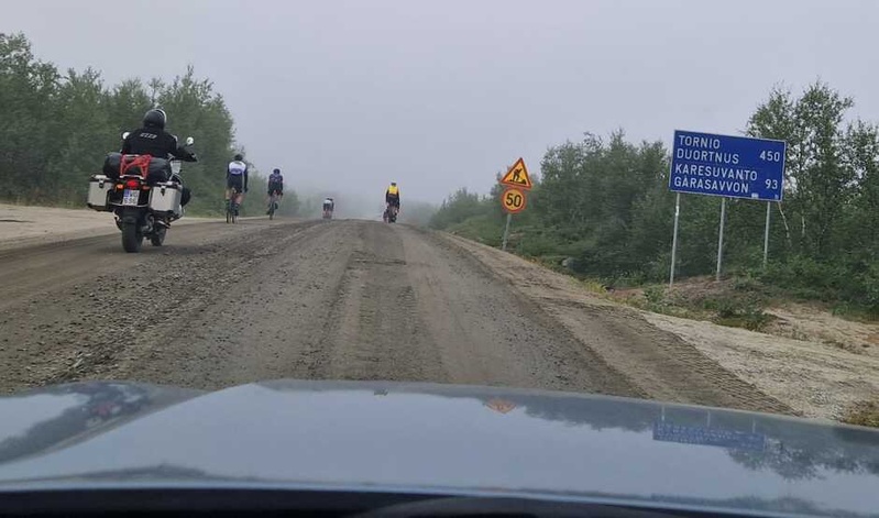 Toinen ajopäivä alkoi pirtukirkon sisäpihalta ryhmittäin klo 06:00 - 07:30 sekä 09:00. Uudistettu reitti siirtyi Kolarin jälkeen Ruotsin valtakunnan puolelle missä uudet huoltopisteet sijaitsivat Pajalassa, Korpilompolossa ja Hanhivittikkossa. Tieosuus Pajalasta Korpilompoloon ja siitä edelleen Ruotsin Ylitorniolle oli kertakaikkiaan upea, maastoltaan vaihteleva ja liikenteeltään hiljainen. Harmillisesti tämä osuus ajettiin kovassa vesisateessa ja melkeimpä kylmässä kelissä. Vesisade hellitti saavuttaessa viimeiseen huoltoon Vitsaniemeen, missä ryhmät alkoivat olla kutakuinkin kasassa. Aurinko alkoi paistamaan n. 15km ennen Torniota. Ehkäpä koko vesisade unohtui tässä vaiheessa. .