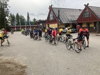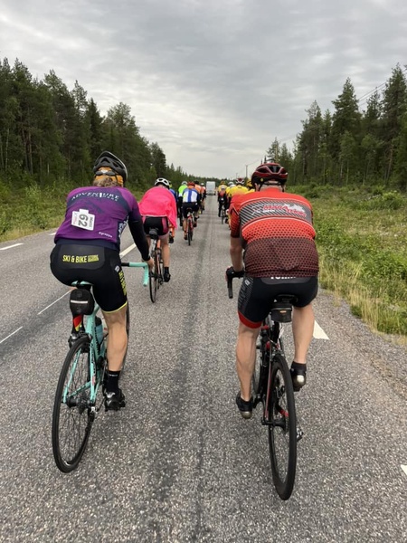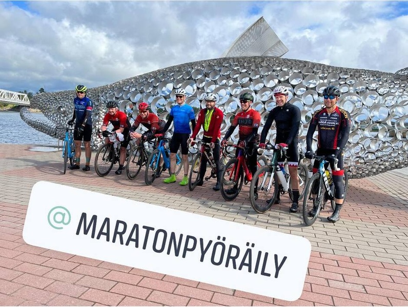Kesän 2023 järjestyksessään 38 Maratonpyöräily järjestettiin torstain-lauantain 27-29.7.2023 välisenä aikana. Lähtö palasi Kilpisjärvelle 2022 välivuoden jälkeen. Reittiä uudistettiin toisen päivän osalta jälleen, pyrkimyksenä oli hakea hyväpintainen, liikenteeltään hiljainen sekä maastoltaan ja maisemiltaan mielekäs baana. Molempien päivien ajoreitti oli 247,5 km eli yhteismatkassa päästiin hyvin lähelle 500 km tavoitetta. Hieman yllättäen osanottajamäärä jäi selvästi alle maksimin eli 120 pyöräilijän. Toisaalta ryhmäkokojen ja huollon osalta vajaan 80 pyöräilijän joukko oli kutakuin optimaalinen. Tapahtuma aloitettiin Torniossa torstaiaamuna ilmottautumisella Ravintola Umpitunnelin piha-alueella. Osallistujille jaettiin numerolaput sekä vuoden 2023 T-paidat. Pyörät lastattiin kuorma-autoon ja matkaan päästiin Jussilan linja-autoilla klo 10. Tämän vuoden tapahtuma oli siitä poikkeuksellinen, että Olavi ei lähtenyt matkaamme. Toki hän on ollut järjestelyissä mukana ja avusti Tornion päässä lähtöä kuin myös maaliintuloa. Yksi suuri muutos olikin että linja-autoissa ei enää kuultu Olavin tarinoita Tornion-Muonionjokivarrren tapahtumista vuosien varrelta. Matkan aikana kuitenkin käytiin lävitse tapahtuman kulkua, uudistettua pyöräreittiä ja huoltopisteitä. Ensikertalaisia oli mukana 23 ja toistakertaa pyöräilyyn osallistuvia 13. Puolenpäivän jälkeen pysähdyimme lounaalle Kolarin Woodjeweliin / Jaskan kahvilaan. Noin tunnin tauon jälkeen matka jatkui Pohjoiseen ja kohti Sonkamuotkaa missä odotti reissun ainoa osallistujien omaa rahaa vaatinut paikka - eli 0,50 eurosentin munkkikahvit. Sonkamuotkan jälkeen seuraava etappi oli Kilpisjärvi missä mielenkiinnolla katselimme Karesuvanto-Kilpisjärvivälin tienparannustöiden tilannetta. Käytännössä tiessä oli säännöllisen epäsäännöllisesti 5-10 metrin kuivajyrsittyjä katkeamia Karesuvannosta eteenpäin ja heti Muotkatakan jälkeen Kilpisjärvelle n. 4km sorapätkä. Selvästi kuitenkin polkupyörällä ajettavissa. Näin ollen Linja-autot voitiin päästää samantien takaisin kohti Etelää. Kilpisjärvelle saavuimme n. klo 17:30 ja majoituimme Tundrean lomakylään. Edellisen kerran olimme täällä vuonna 2012. Majoitukset oli jaettu etukäteen laadukkaisiin mökkeihin sekä huoneistoihin. Kiitosta saanut päivällinen (Kananrintafile, riisi, kookoskastike) nautittiin porrastetusti Tundrean ravintolassa. Sitä edeltäen pyörät oli purettu NK-Logistiikan kuorma-autosta ja parhaat ehtineet käydä lyhyen prologinkin. Fiksuimmat kävivät testaamassa myös tietyöalueen ajokuntoisuuden - kiitokset tästä! Perjantaiaamuna pyöräilijät lähtivät ryhmittäin liikkeelle klo 06:00, 07:30 ja 09:00 Kilpisjärveltä. Lähtiessä sää oli sumuinen ja kolea. Käytännössä ryhmäajo alkoi Suomen maanteiden korkeimmalta kohdalta eli Muotkatakan jälkeen. Tätä edelsi n. 3-4km soralla oleva tietyöosuus mikä ajettiin yhdessä jonossa varovasti. Kaikenkaikkiaan kolme rengasrikkoa tapahtui eli ilman pahempia ongelmia päästiin jatkamaan matkaa. Matkaa Karesuvantoon tahditti kuivajyrsintänä tehdyt n. 10 metrin katkeamat jotka kuitenkin selvitettiin kaikissa ryhmissä ongelmitta. Sääkin lämpeni n. 35km jälkeen kun taivas kirkastui ja Iittosuvannon huoltopisteeltä matka jatkui lyhyissä ajovarusteissa. Ajopäivä vietetiin lähes tyvenessä ja lämpimässä säässä, mitä nyt kuntoryhmän kasteli oikein kunnon sadekuuro Sonkamuotkan kohdalla. Vapaataival alkoi Oloksen huoltopisteen jälkeen. Maratonpyöräilyn yksi kohokohta eli Tiurajärventien pätkä Äkäslompoloon ajettiin kuten aina ennenkin auringonpaisteessa pienen kisailun siivittämänä. Uupuneet mutta onnelliset pyöräilijät saapuivat Äkäshotelliin n. klo 16 aikoihin missä kertailtiin päivän kulkua sisäpihalla muutaman huurteisen kera. Majoittuminen oli järjestetty kuten Kilpisjärvellä, eli yöpaikat oli jaettu pariskunnittain, kaverusten kesken tai ajoryhmien välillä etukäteen. Tukeva päivällinen nautittiin Äkäshotellin ravintolassa,.